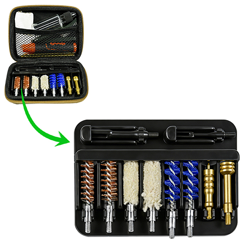 권총 청소 키트에는 2가지 크기(9mm 및 0.45cal)가 포함되어 있습니다. OX 천 코팅