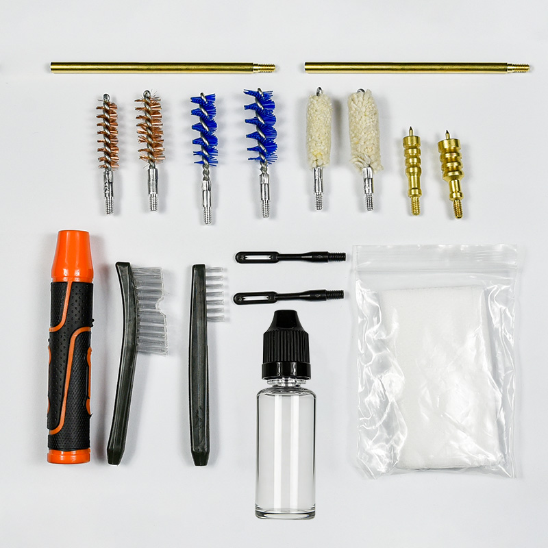 권총 청소 키트에는 2가지 크기(9mm 및 0.45cal)가 포함되어 있습니다. OX 천 코팅 지퍼가 달린 PVC 케이스. 황동 브러시, 면 대걸레, 나일론 브러시, 황동 재그, 막대 2개. 선택할 수 있는 모래와 검정색.