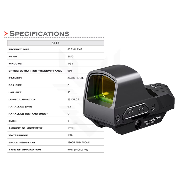 HD511A 소형 광학 사냥 레드 닷 사이트는 대량으로 도매 구매가 가능합니다