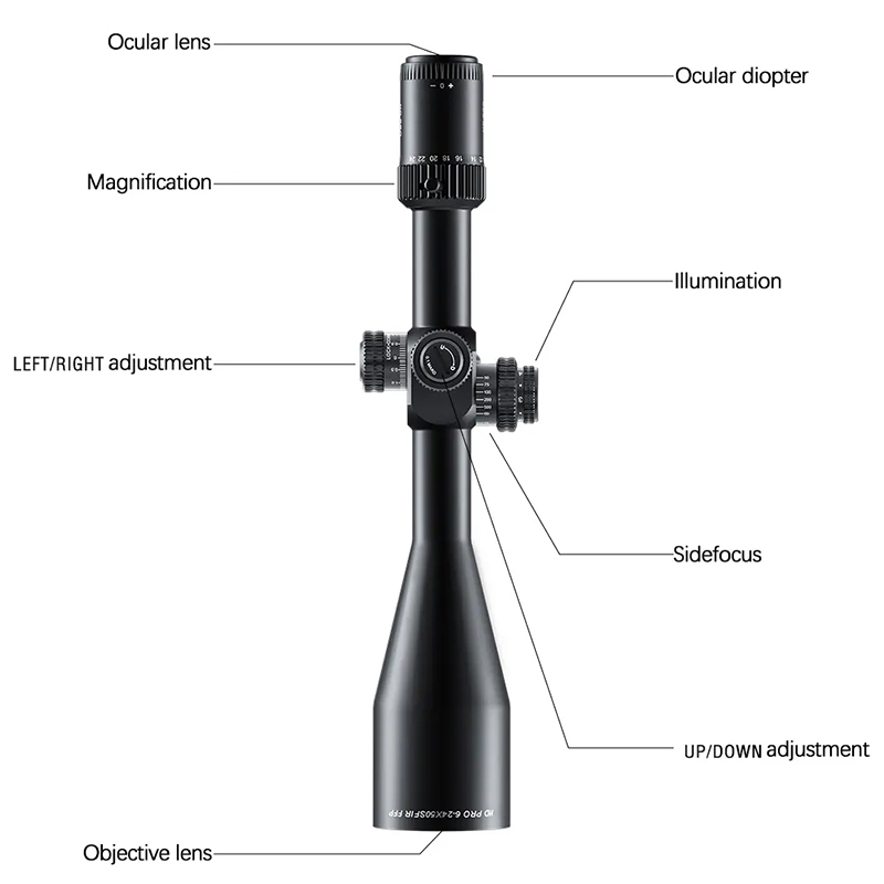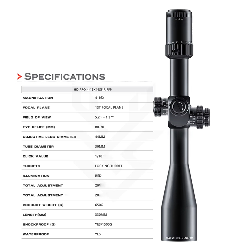 광학 HD PRO 4-16X44 SFIR FFP 고충격 저항 사냥 범위 전술 장거리 사격 30mm 튜브