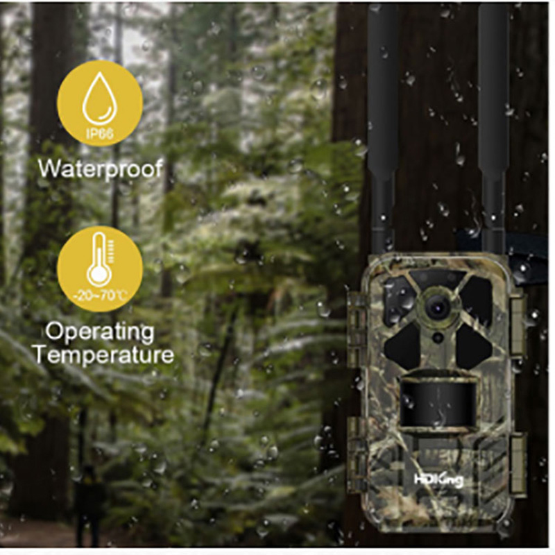4G 무선 / 듀얼 안테나 디자인 / 방수 IP65 / 5.0M 픽셀 CMOS 센서 / 0.5S 빠른 트리거 시간 / 긴 대기 시간 / 긴 야간 투시 범위 / 작동 온도