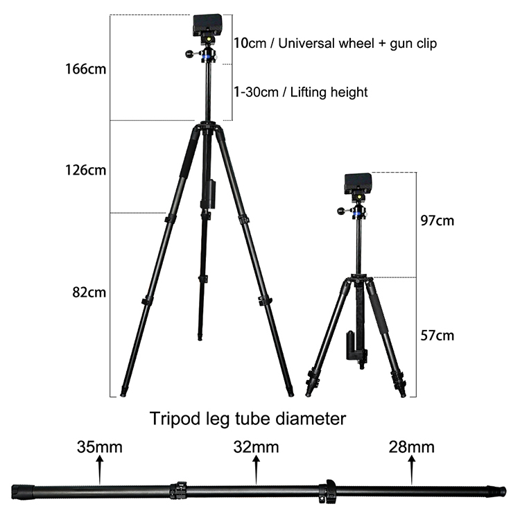 알루미늄 삼각대, 내구성이 뛰어난 건 마운트, 전기적으로 조절 가능한 높이