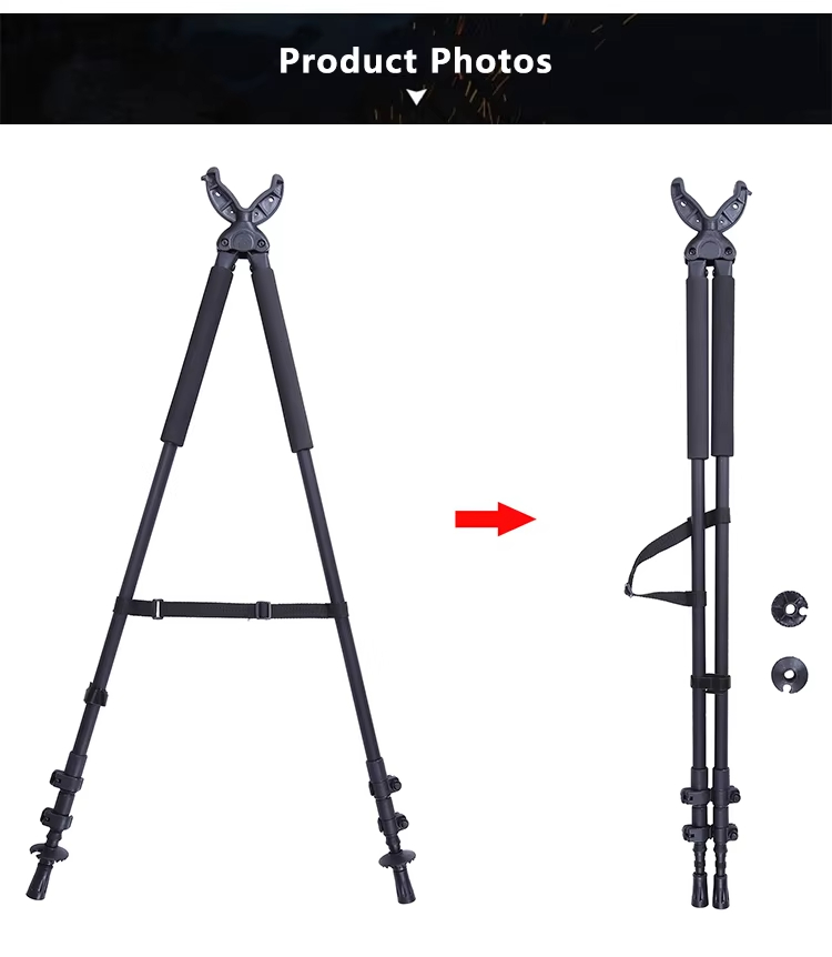 야외 전술 총 휴대용 삼각대 지원 사냥 텔레스코픽 슈팅로드 V 자형 로터리 멍에 삼각대
