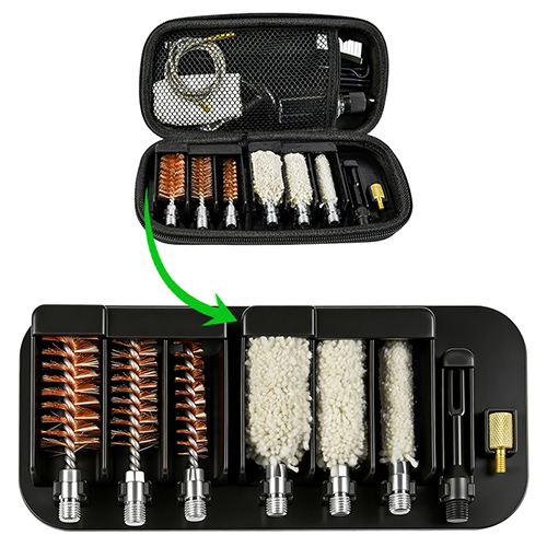 샷건 청소 키트에는 3가지 크기(12/16G, 20G, 410)가 포함되어 있습니다. 황동 브러시 및