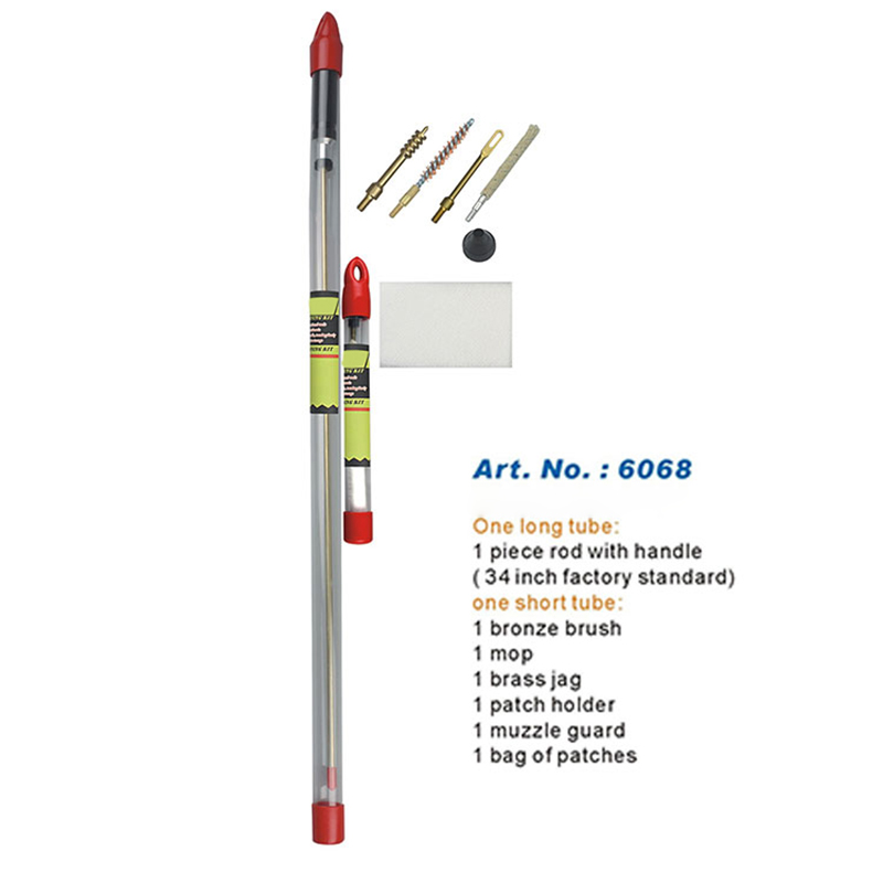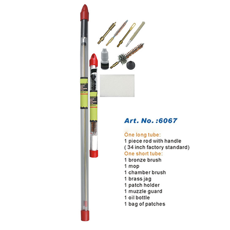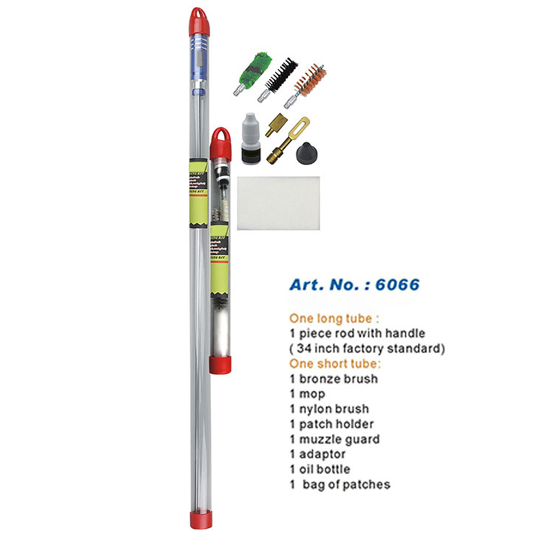 라이플 청소 키트 원피스 롱 로드 행잉 튜브 팩 ● 일체형 긴 로드 34인치/860mm, 절단 없음, 로드에 단차 없음. ● 보어 청소에 적합한 견고한 브러시 및 액세서리. ● 회전식 알루미늄 핸들이 자유롭게 움직입니다. ● 긴 투명 튜브에 포장되어 있어 쉽게 꺼내고 보관할 수 있습니다. ● OEM 또는 고객의 스틱과 로고를 쉽게 부착할 수 있습니다.